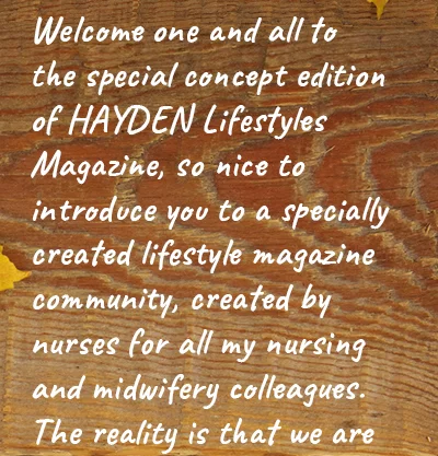 Welcome one and all to the special concept edition of HAYDEN Lifestyles Magazine, so nice to introduce you to a specially created lifestyle magazine community, created by nurses for all my nursing and midwifery colleagues. The reality is that we are all in recovery mode whether you work in the NHS, work outside, or have your own nurse led business, and why do I know, because I’m a nurse too doing all of these.. My journey may be different to yours, but I have seen the real pain and anguish that some of you have been going through, sometimes without recognition of health challenges, or role appreciation.
