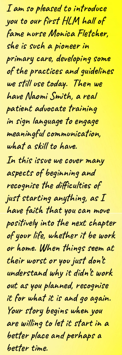 In this issue we cover many aspects of beginning and recognise the difficulties of just starting anything, as I have faith that you can move positively into the next chapter of your life, whether it be work or home. When things seem at their worst or you just don’t understand why it didn’t work out as you planned, recognise it for what it is and go again. Your story begins when you are willing to let it start in a better place and perhaps a better time.