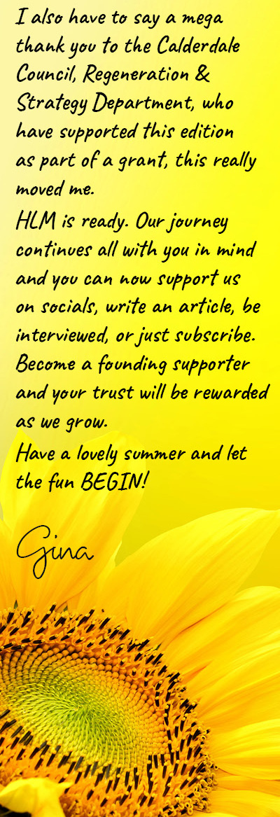 I also have to say a mega thank you to the Calderdale Council, Regeneration & Strategy Department, who have supported this edition as part of a grant, this really moved me.